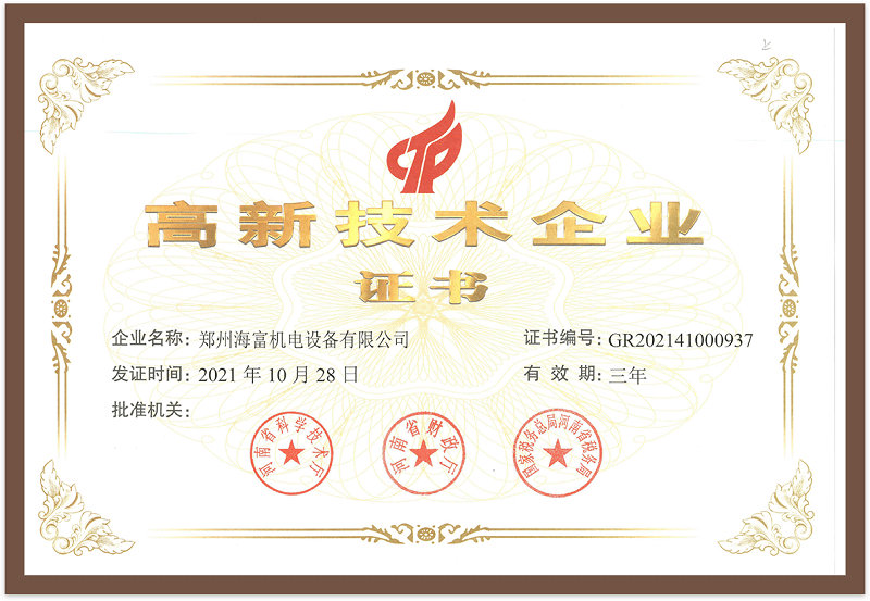 鄭州海富機電設備有限公司成立于2007年6月1日,注冊資金1050萬(wàn)元,是國內集研究、開(kāi)發(fā)、制造、銷(xiāo)售于一體的高新技術(shù)企業(yè)。