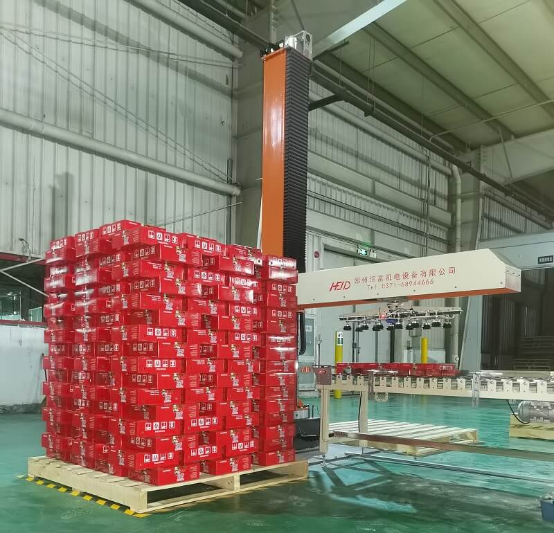 干粉砂漿、膩子粉、化工原料、化肥、飼料、環(huán)保涂料、面粉、糧食、生物顆粒、箱裝食品、飲料酒水、食用油桶、金屬鐵桶、板材、金屬工件、保溫材料或其他特殊產(chǎn)品的自動(dòng)化碼垛。