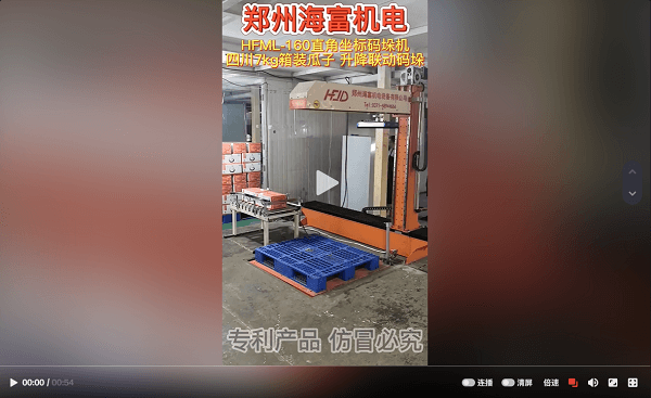 HFML-160直角坐標(biāo)碼垛機(jī)-7kg瓜子箱裝碼垛-液壓升降聯(lián)動(dòng)